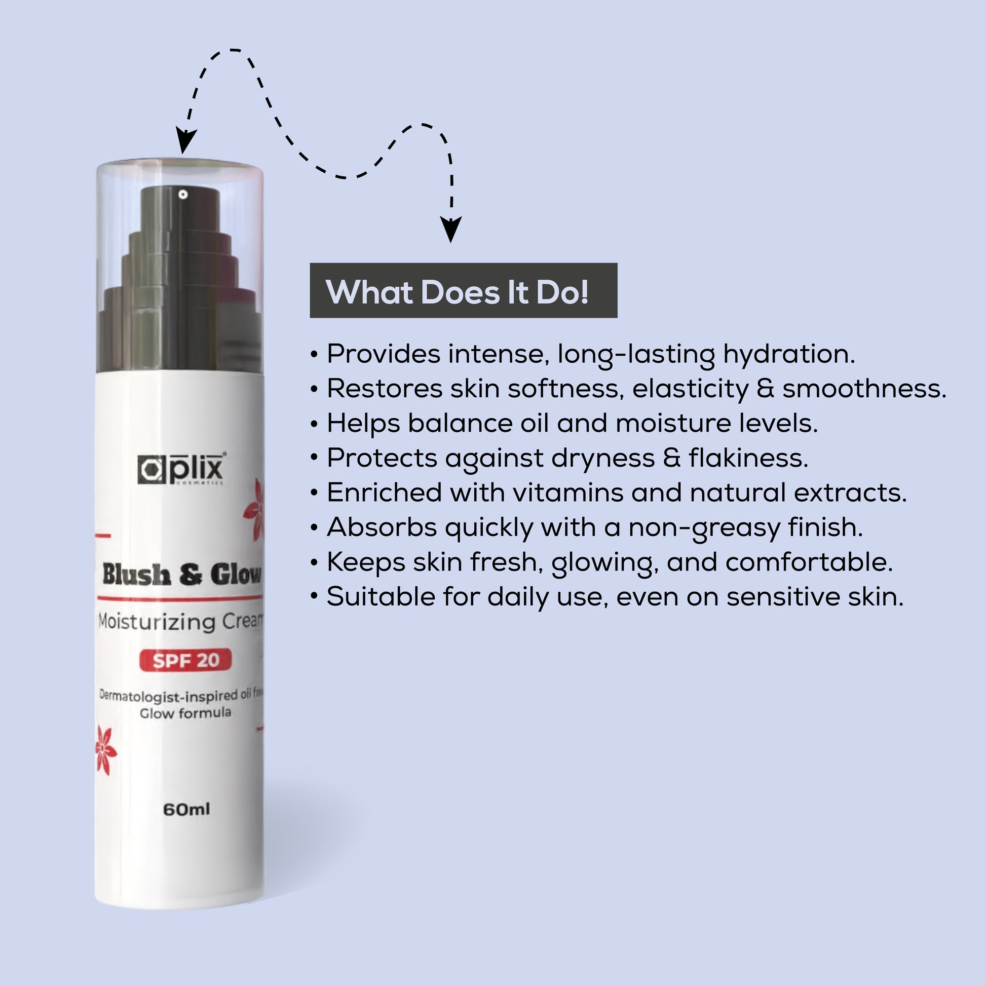 • Keeps skin fresh, glowing, and comfortable all day.